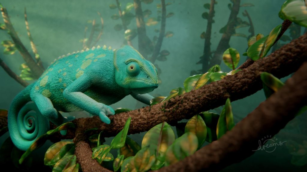 Chameleons. What incredible creatures. They’re able to change the colour of their skin by manipulating nanocrystals in their cells, and have super-powerful tongues that can be up to twice as long as their bodies. They’re also the guiltiest-looking things on the planet. Julio_grr has managed to capture all these iconic qualities of this distinctive reptile with a colour-changing, living sculpture so eye-poppingly detailed and realistically animated that we struggle to understand how they’ve achieved it - and that’s before we realise that it’s interactive. Squeezing the triggers allows us to slurp up any unsuspecting morsels that land close by. At least Camille definitely appears to have a conscience about it.