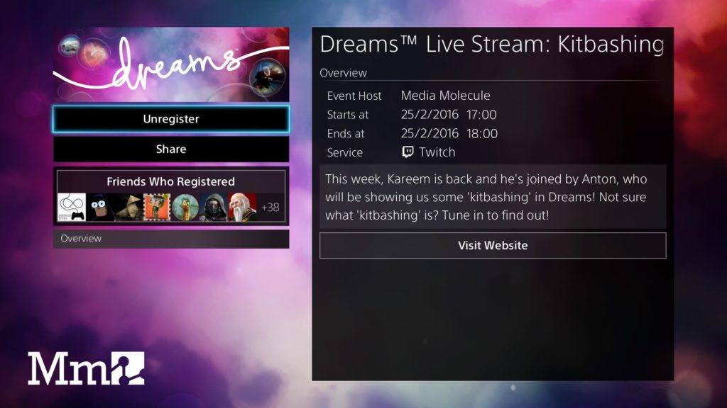 You can watch us live on Twitch this Thursday at 5pm UK time. Or, if you fancy it, you can catch us on PlayStation Events on your PS4 (see image above) and you can register for our event right NOW!