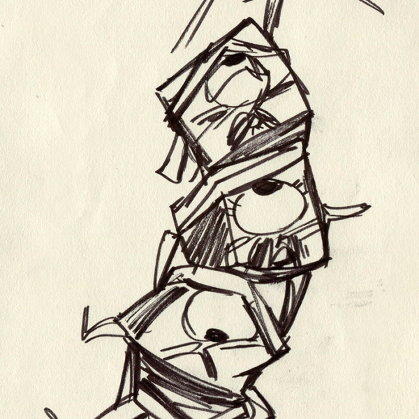 LittleBigPlanet Concept Art: Sackboy being squashed